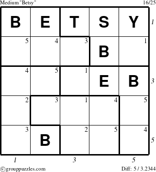 Place each element of the group (B E T S Y) exactly once in each row, each column, and each pentomino.