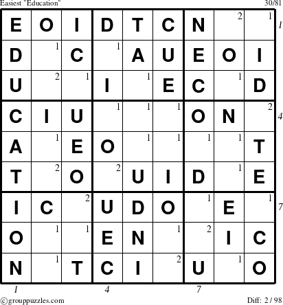 - The only spot left for E in the 7th 3x3 square is at (2, 9).