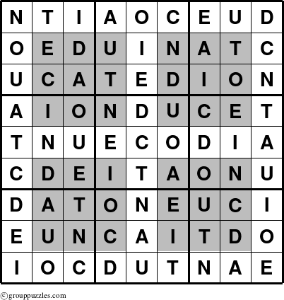 The grouppuzzles.com Answer grid for the HyperEducation-i1 puzzle for