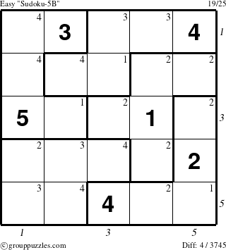 Place each element of the group (1 2 3 4 5) exactly once in each row, each column, and each pentomino.