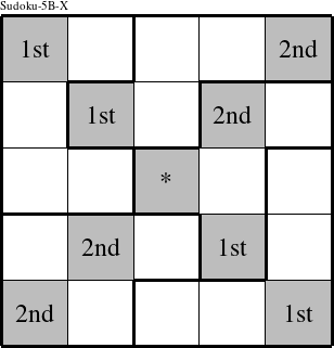Each diagonal is a group numbered as shown in this Sudoku-5B-X figure.