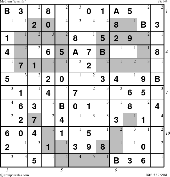 - The only spot left for 1 in the 12th 4x3 rectangle is at (12, 12).